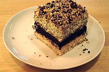 Для теста: 3 стакана сахара, 3 стакана муки, 2 стакана сметаны, 6 яиц, 1/2 стакана грецких орехов, 1 пакетик пекарского порошка, 4 столовых ложки какао, 3 столовых ложки мака; для крема: 150 гр масла, 1 банка сгущенного молока.
