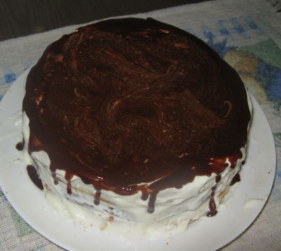 | Рецепт приготовления блюда: | Взбить яйца с сахаром добела. Добавить сметану, размягченный маргарин, соль, муку с вмешанным разрыхлителем и хорошенько перемешать. Разделить на три части, в одну добавить порошок-какао. Выпечь три коржа, остудить. Для крема взбить сметану с сахаром, порошком-какао и загустителем. Промазать коржи кремом, коричневый корж в середине. Верх торта полить растопленным шоколадом и вилкой создать эффект мрамора. |