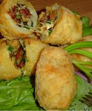 Варим очищенный картофель, сливаем воду, просушиваем и делаем пюре, добавляем сливочным маслом с яичными желтками, взбиваем. Потом из пюре делаем маленькие шарики, раздавливаем шарик на ладошке, на середину которых ложем фарш из грибов, придаем крокетам форму груши или яблока, после чего их надо обкатать в муке и в крошках белого хлеба. Обжариваем в глубокой сковороде в кипящем жире (подсолнечном масле).