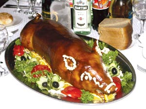 Для начала возьмем очищенного и вымытого поросенка, натираем его по всему периметру солью. Поджигаем духовку и хорошенько ее прогреваем. Затем, помещаем на противень поросенка, но его нужно так уложить, чтобы под ним было пространство, для этих нужд можно воспользоваться рейками, тогда он пропечется со всех сторон. Запекаем мы его около 1,5 часа, чтобы он хорошо прожарился, при этом его нужно постоянно обмазывать растопленным маслом, это даст ему золотистую, румяную корочку. Так же его можно сделать фаршированным, при этом его можно нафаршировать как квашеной капустой, так и гречневой кашей