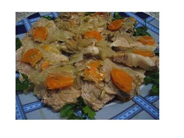 Блюдо подавать слегка теплое.